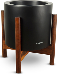 Le Present century planter, 18" in height with a finish in black. Created in fiberglass with a wood rack to hold planter. Our mission is to bring style, originality, and affordability to every product we offer. Behind every product stands our commitment to design, quality, and longevity.Read More